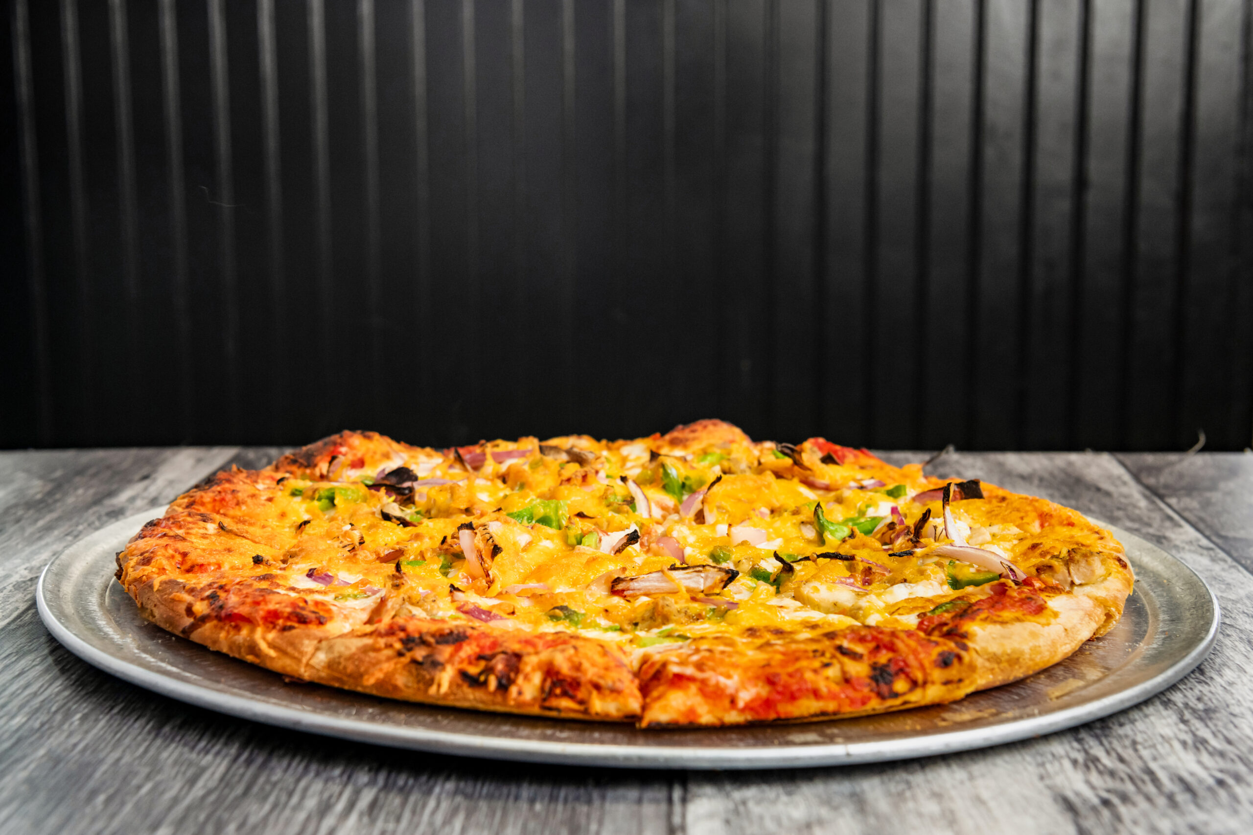 Black Olives, Mushrooms, Red Onions, Green Peppers, Tomatoes