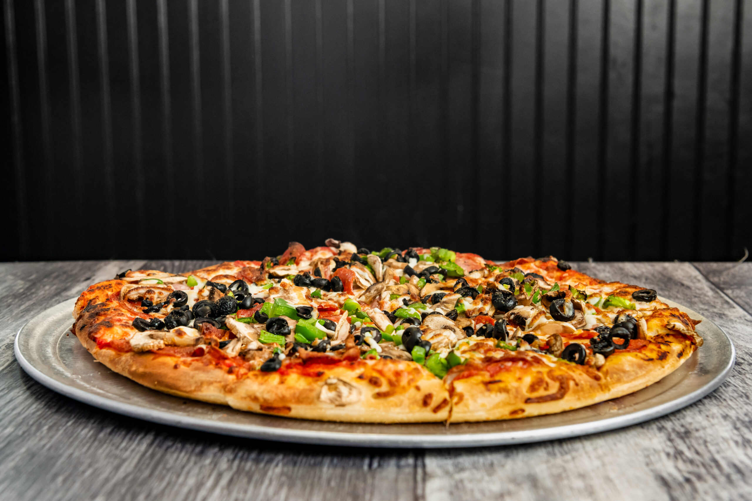 Pepperoni, Salami, Mushrooms, Black Olives, Green Pepper